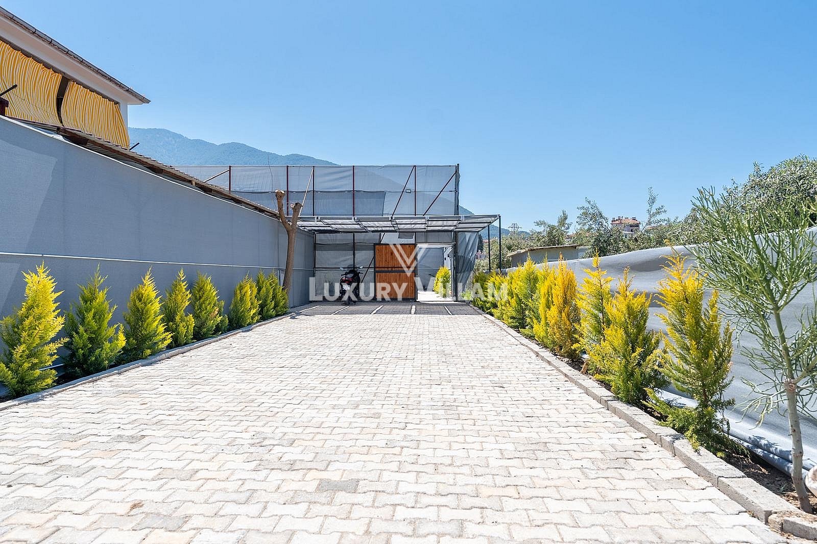 Fethiye'nin muhteşem doğasında şehir kargaşasından uzak bir tatil geçirmenizi sağlayacak olan villamızın havuz ve bahçe kısmında kapasiteye uygun oturma grubu, şezlong takımı, barbekü alanı; havuz terasına açılan, her ayrıntısı özenle tasarlanmış ferah bir oturma odası ve tam donanımlı açık mutfağı bulunmaktadır.