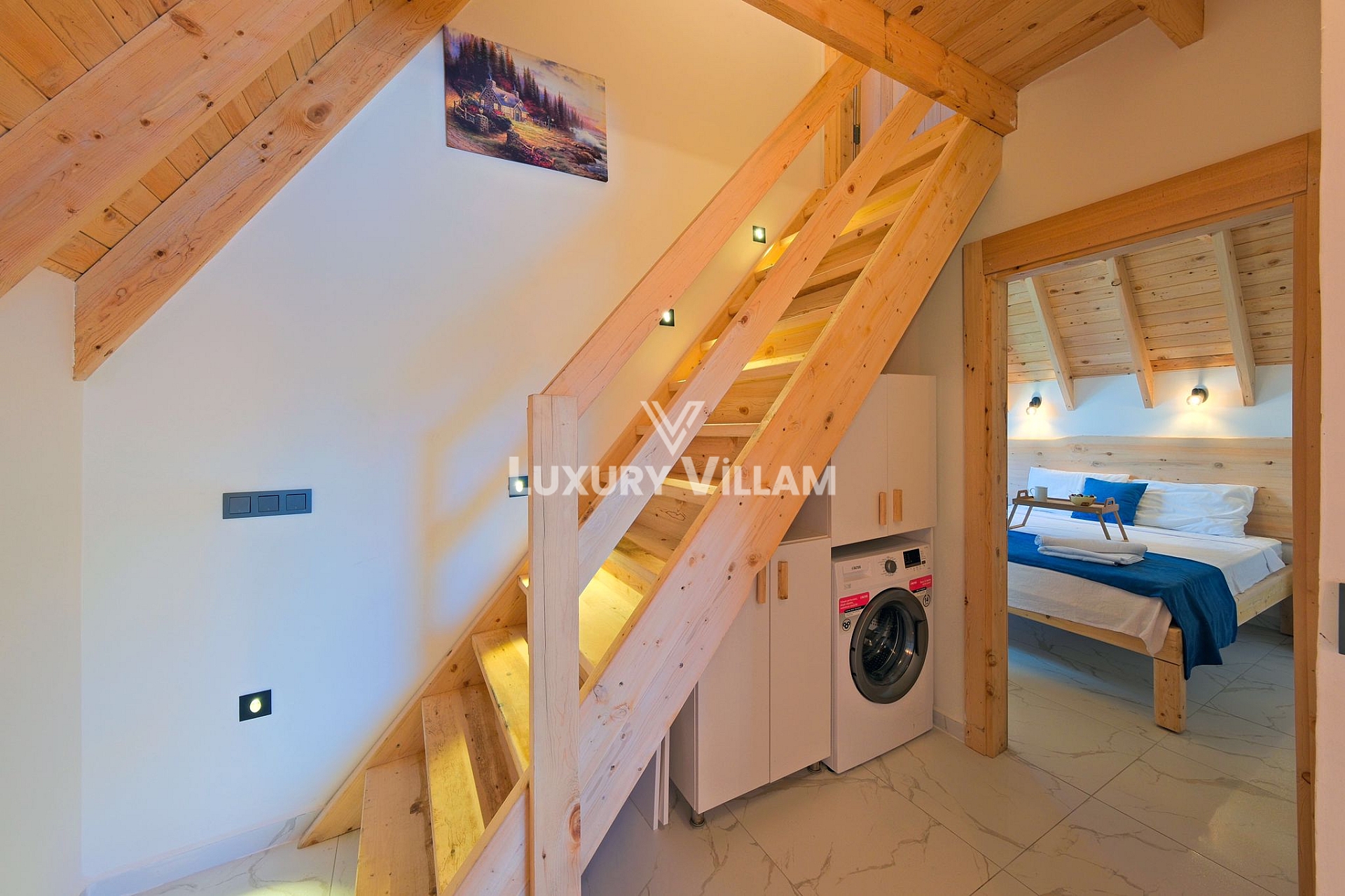 Donanım: Klima, TV, tam mutfak gereçleri, çamaşır makinesi ve şık banyo.