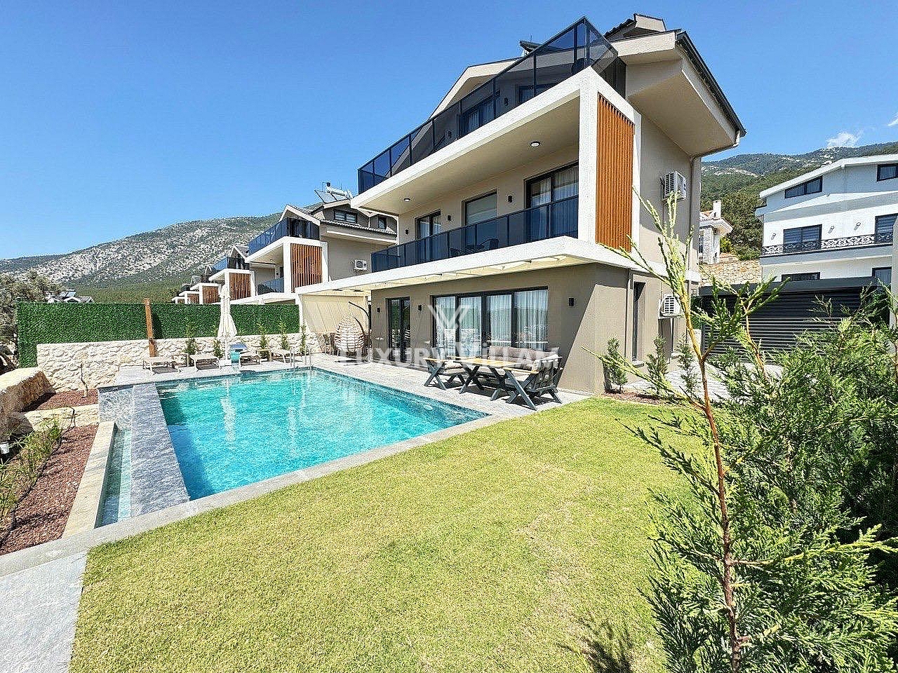 Geniş bahçe havuz, bahçe mobilyaları, BBQ alanı ile ailenizle rahat edebileceğiniz bir alana sahip villamız Babadağ eteklerinde bulunmaktadır.